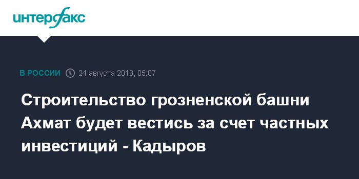 Строительство грозненской башни Ахмат будет вестись за счет частных инвестиций - Кадыров