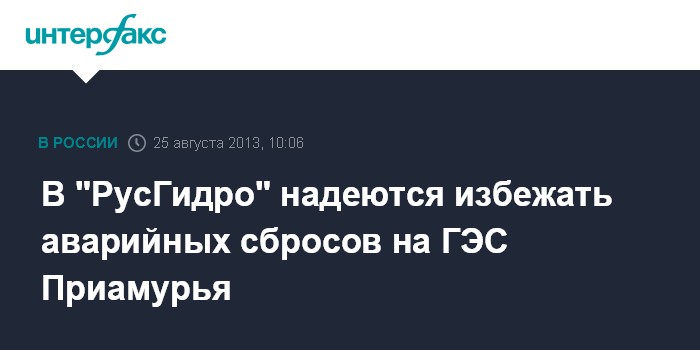 Хабаровск. 25 августа. INTERFAX.RU - Объемы холостых сбросов воды на Бурейской ГЭС в Амурской области в ближайшие дни могут быть снижены на 350 куб. м в секунду, сообщил глава ОАО "РусГидро" Евгений Дод на пресс-конференции в Хабаровске в воскресенье. "Аварийных сбросов, я надеюсь, мы избежим. Уровни позволяют нам ближайший приток принять без увеличения сброса, даже, потенциально, со снижением сброса в нижний бьеф по обеим станциям. В ближайшее время будем обсуждать снижение (объемов холостых сбросов - ИФ) на одну ступень, это 350 куб. м в секунду, по Бурейской ГЭС", - сказал глава энергохолдинга.