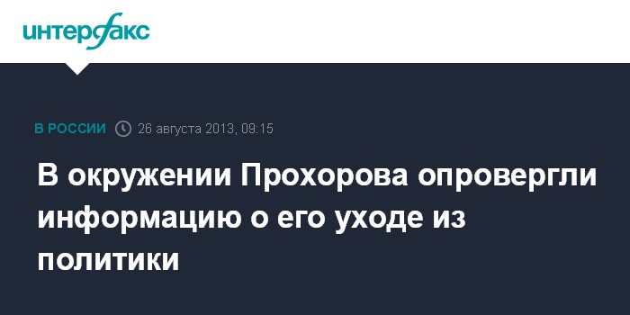 Москва. 26 августа. INTERFAX.RU - Пресс-секретарь Михаила Прохорова опровергла информацию, появившуюся в ряде СМИ, о завершении его политической деятельности.