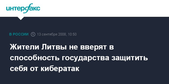 Москва. 13 сентября. INTERFAX.RU - Только 7,8% жителей Литвы считают, что госучреждения готовы противостоять кибернетическим атакам, свидетельствуют итоги опроса, проведенного в июле по заказу интернет-сайта Delfi группой исследований рынка и общественного мнения Spinter tyrimai.