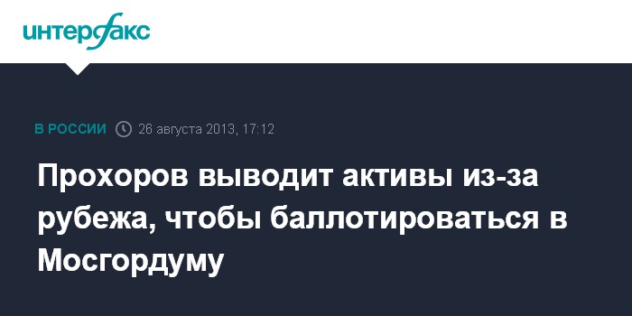 Москва. 26 августа. INTERFAX.RU - Лидер "Гражданской платформы", миллиардер Михаил Прохоров заявил, что успеет переоформить свои иностранные активы в течение года до выборов в Московскую городскую думу.