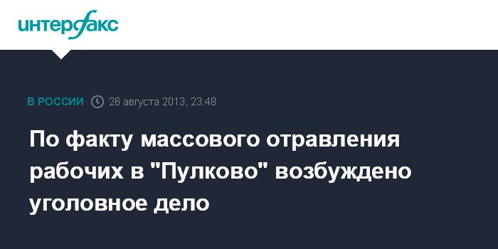 Москва. 26 августа. INTERFAX.RU - По факту массового пищевого отравления на стройплощадке нового терминала аэропорта "Пулково" в Санкт-Петербурге возбуждено уголовное дело.