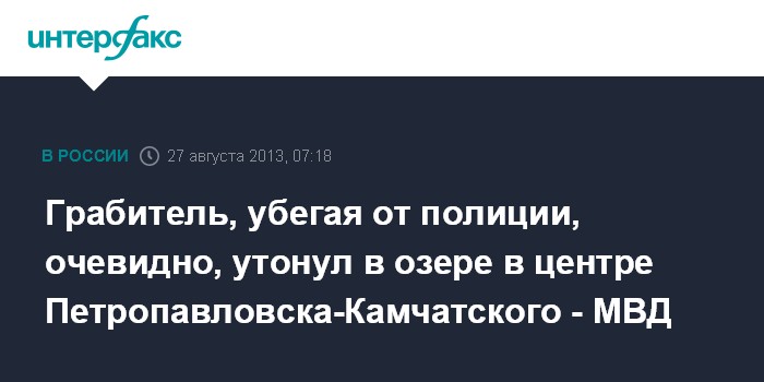Грабитель, убегая от полиции, очевидно, утонул в озере в центре Петропавловска-Камчатского - МВД
