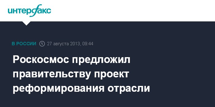 Москва. 27 августа. INTERFAX.RU - Роскосмос внес в правительство РФ системный проект реформирования ракетно-космической промышленности.