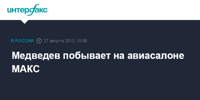 Москва. 27 августа. INTERFAX.RU - Премьер Дмитрий Медведев во вторник посетит международный авиакосмический салон МАКС.