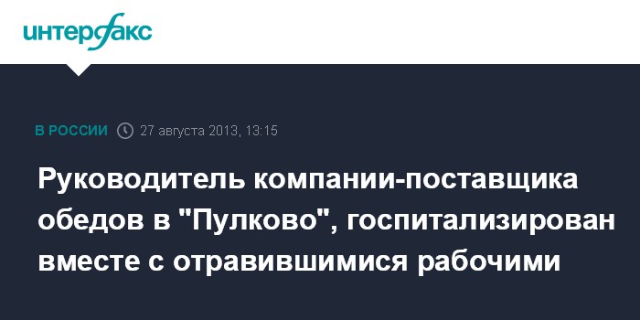 Санкт-Петербург. 27 августа. INTERFAX.RU - Среди госпитализированных с отравлением рабочих, задействованных на строительстве нового терминала аэропорта "Пулково", оказался один из руководителей компании-поставщика обедов, сообщает пресс-служба управлении на транспорте МВД по СЗФО во вторник.