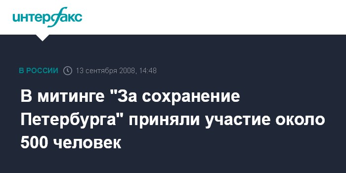 Москва. 13 сентября. INTERFAX.RU - В Петербурге в субботу днем на площади перед дворцом спорта "Юбилейный" прошел митинг за сохранение исторического города, передает корреспондент "Интерфакса".