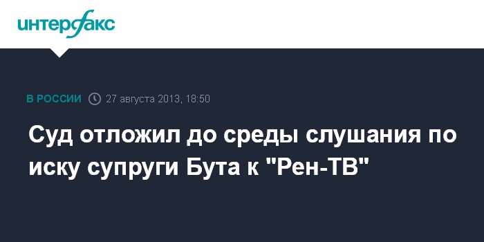 Суд отложил до среды слушания по иску супруги Бута к "Рен-ТВ"
