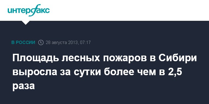 Площадь лесных пожаров в Сибири выросла за сутки более чем в 2,5 раза