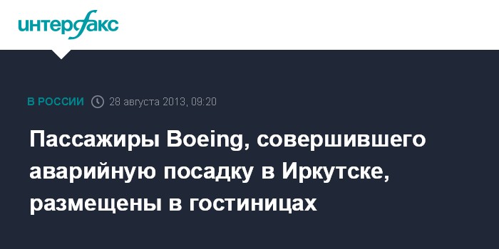 Иркутск. 28 августа. INTERFAX.RU - Пассажиры авиалайнера Boeing 747, следовавшего по маршруту Лондон-Пекин и совершившего аварийную посадку в Иркутске, размещены в гостиницах города.