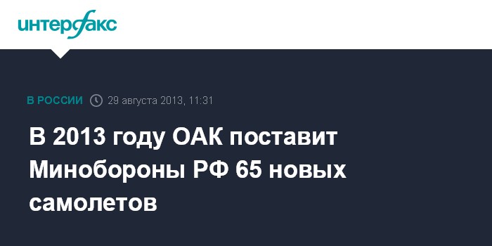 В 2013 году ОАК поставит Минобороны РФ 65 новых самолетов