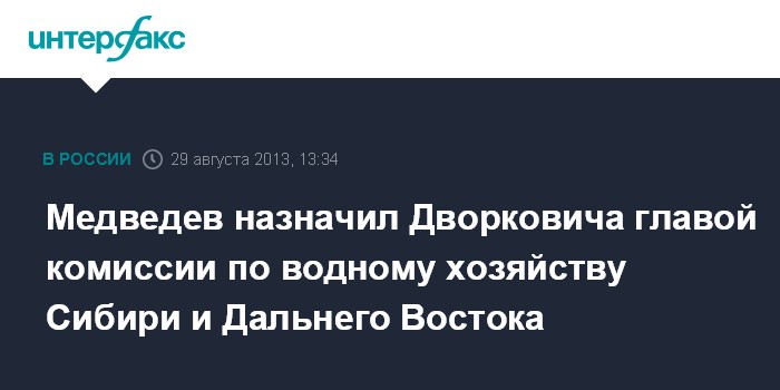 Москва. 29 августа. INTERFAX.RU - Председатель правительства РФ Дмитрий Медведев дал поручение рассмотреть на ближайшем заседании кабинета вопрос о создании правительственной комиссии по обеспечению устойчивого функционирования водохозяйственного комплекса Сибири и Дальнего Востока, а также назначении вице-премьера Аркадия Дворковича ее председателем, сообщила в четверг пресс-служба кабинета министров.