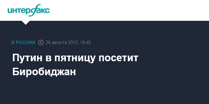 Хабаровск. 30 августа. INTERFAX.RU - Владимир Путин, который находится с рабочей поездкой в регионах Дальнего Востока, подвергшихся масштабному наводнению, в пятницу посетит Еврейскую автономную область.