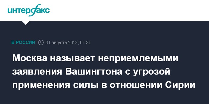 Москва. 31 августа. ИНТЕРФАКС - В Москве подвергли резкой критике последние заявления руководства США, касающиеся ситуации в Сирии.