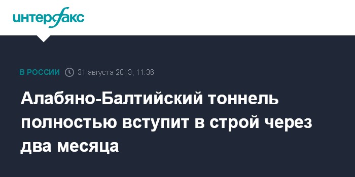 Алабяно-Балтийский тоннель полностью вступит в строй через два месяца