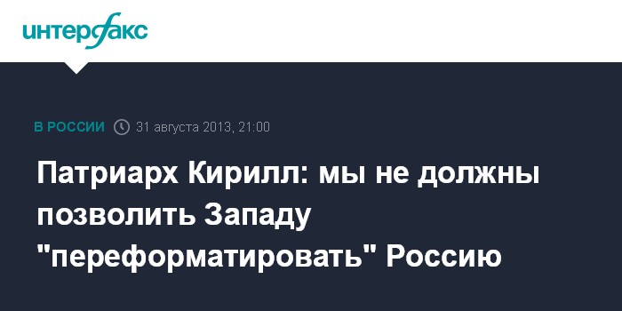 Патриарх Кирилл: мы не должны позволить Западу "переформатировать" Россию