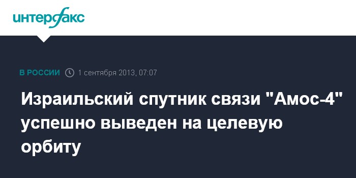 "В 06:50 космический аппарат "Амос-4" успешно отделился от разгонного блока", - уточнил собеседник агентства.