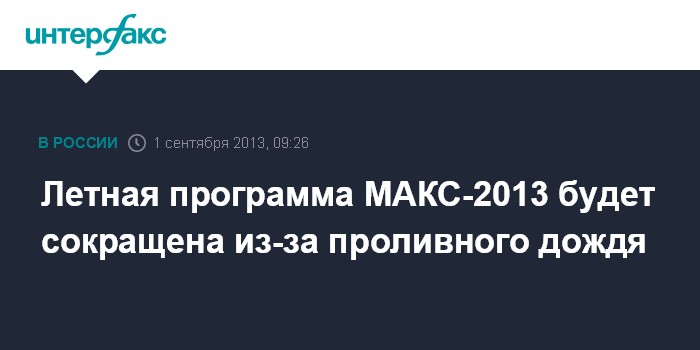 Летная программа МАКС-2013 будет сокращена из-за проливного дождя