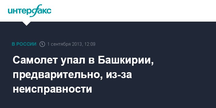 Самолет упал в Башкирии, предварительно, из-за неисправности