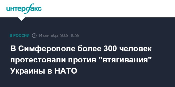 Симферополь. 14 сентября. INTERFAX.RU - В Симферополе прошел митинг, участники которого протестовали против действий руководства Украины по "втягиванию" страны в НАТО и в поддержку решения России по признанию независимости Южной Осетии и Абхазии.