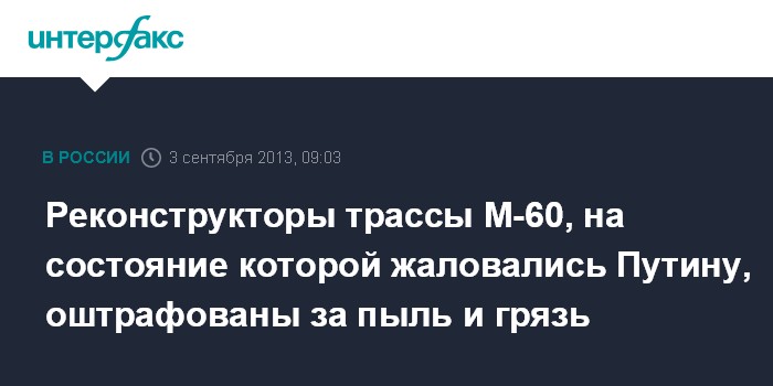 Реконструкторы трассы М-60, на состояние которой жаловались Путину, оштрафованы за пыль и грязь