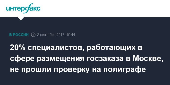 20% специалистов, работающих в сфере размещения госзаказа в Москве, не прошли проверку на полиграфе