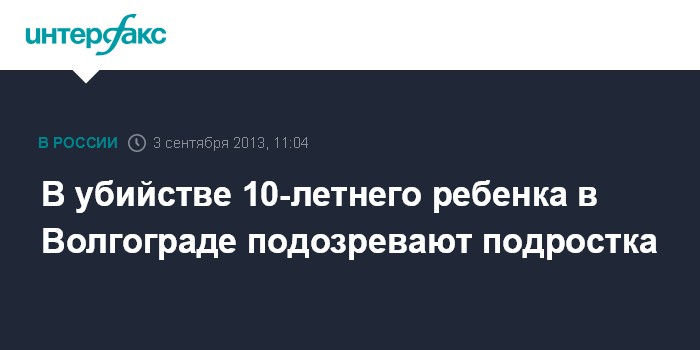 Волгоград. 3 сентября. INTERFAX.RU - По подозрению в убийстве 10-летнего школьника, который пропал в Волгограде накануне и был обнаружен мертвым во вторник утром недалеко от дома, разыскивают несовершеннолетнего.