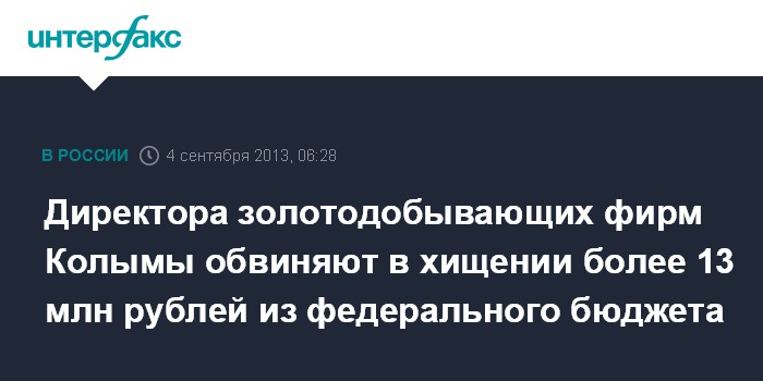 Директора золотодобывающих фирм Колымы обвиняют в хищении более 13 млн рублей из федерального бюджета