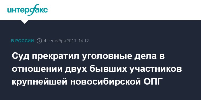 Новосибирск. 4 сентября. INTERFAX.RU - Ленинский районный суд прекратил ввиду истечения срока давности уголовные дела в отношении двух бывших участников одного из крупнейших преступных сообществ Новосибирска - так называемой "труновской группировки", сообщает Управление судебного департамента по Новосибирской области.