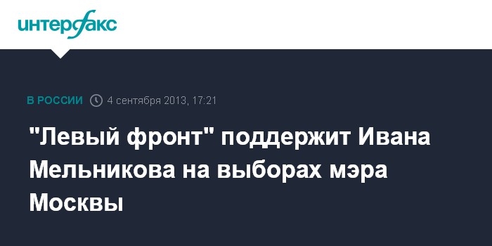 Москва. 4 сентября. INTERFAX.RU - "Левый фронт" поддержит на выборах мэра Москвы кандидата от КПРФ Ивана Мельникова.