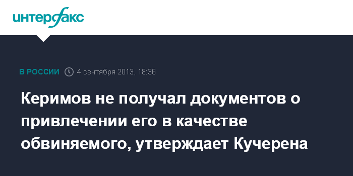 Керимов не получал документов о привлечении его в качестве обвиняемого, утверждает Кучерена