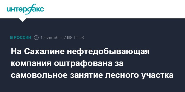 Южно-Сахалинск. 15 сентября. ИНТЕРФАКС-ДАЛЬНИЙ ВОСТОК - ЗАО "Пасифик Ойл Ресорсес" признано виновным в самовольном занятии лесных участков (ст.7.9 КоАП РФ) на Сахалине и оштрафовано на 15 тыс. рублей.