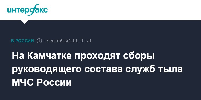 Хабаровск. 15 сентября. ИНТЕРФАКС-ДАЛЬНИЙ ВОСТОК - В Камчатском крае с 15 по 20 сентября пройдет Всероссийский методический сбор-семинар с участием руководящего состава служб тыла и вооружения МЧС РФ.
