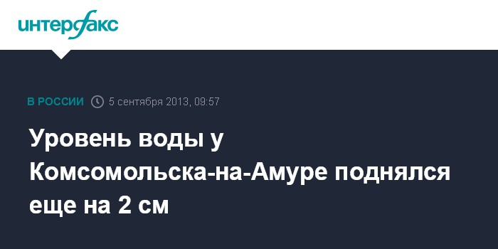 Хабаровск. 5 сентября. INTERFAX.RU - Уровень воды в Амуре у Хабаровска, по данным на на 16:00 местного времени (09:00 мск), составил 801 сантиметра, а у города Комсомольск-на-Амуре - 848 сантиметра.