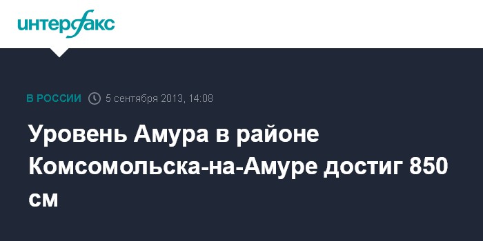 Хабаровск. 5 сентября. INTERFAX.RU - Уровень Амура в районе Комсомольска-на-Амуре к 20:00 по местному времени (13:00 мск) увеличился до 850 см, сообщила пресс-служба ГУ МЧС по региону в четверг. За четыре часа река поднялась на 2 сантиметра.