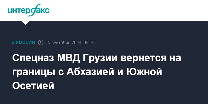Тбилиси. 15 сентября. INTERFAX.RU - Глава МВД Грузии Вано Мерабишвили заявил, что грузинскую полицию на границе с Абхазией и Южной Осетией сменит спецназ МВД.