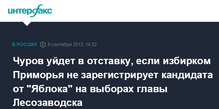 Чуров уйдет в отставку, если избирком Приморья не зарегистрирует кандидата от "Яблока" на выборах главы Лесозаводска