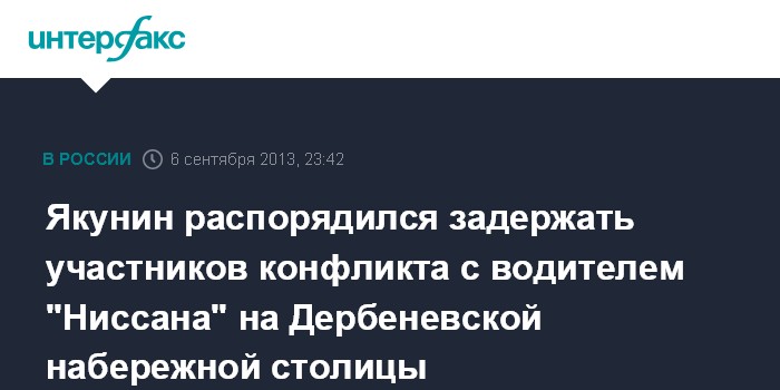 "Несмотря на то, что водитель автомобиля "Ниссан", который в четверг днем подвергся нападению на Дербеневской набережной, и вчера и сегодня при повторном опросе категорически отказался писать заявление в отношении напавших на него граждан, начальником ГУ МВД России по Москве А.Якуниным дано указание предпринять все меры для задержания и привлечения к ответственности виновных в инциденте на основании заявления общественной организации "Синие ведерки"", - сообщили "Интерфаксу" в пресс-службе столичной полиции.