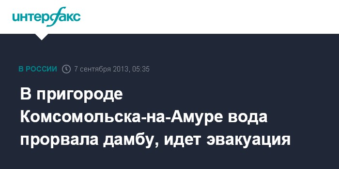 Хабаровск. 7 сентября. ИНТЕРФАКС-ДАЛЬНИЙ ВОСТОК - В поселке Менделеева (г. Комсомольск-на-Амуре) на улице Сторожевой, 28, произошел перелив воды через временную дамбу, сообщает пресс-служба ГУ МЧС по Хабаровскому краю в субботу.