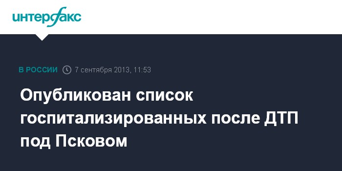 Москва. 7 сентября. INTERFAX.RU - Список из 13 пострадавших в результате ДТП на 519-м км трассы "Москва-Рига" опубликован на сайте управления МВД РФ по Псковской области.