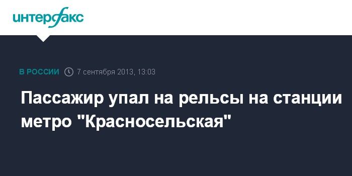 Москва. 7 сентября. INTERFAX.RU - Около 20 минут потребовалось для извлечения человека, упавшего в субботу на пути станции "Красносельская" Сокольнической линии московского метро.