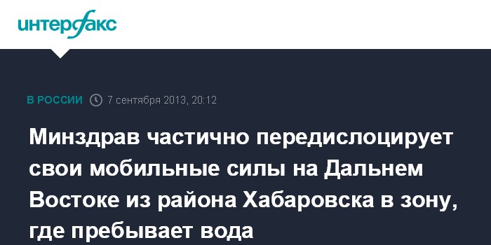 Минздрав частично передислоцирует свои мобильные силы на Дальнем Востоке из района Хабаровска в зону, где пребывает вода