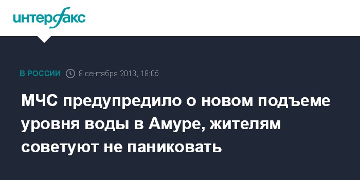 Москва. 8 сентября. INTERFAX.RU - Подъем уровня воды в реке Амур ожидается в Хабаровском крае, МЧС предупреждает о возможности подтоплений, сообщает ГУ МЧС по Хабаровскому краю.