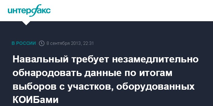 "Мы требуем незамедлительного опубликования данных по явке и незамедлительного опубликования данных с участков с КОИбами. Этого не происходит, и я как кандидат в мэры Москвы требую официально, чтобы это было сделано", - сказал Навальный журналистам в воскресенье.