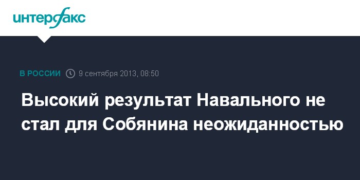 Москва. 9 сентября. INTERFAX.RU - Сергей Собянин заявил, что в принципе ожидал высокий результат своего конкурента на выборах мэра Москвы Алексея Навального. "Вполне", - сказал Собянин, отвечая на соответствующий вопрос журналиста в понедельник.