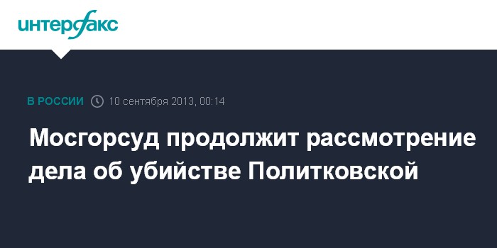 Москва. 10 сентября. INTERFAX.RU - Мосгорсуд во вторник продолжит рассматривать дело об убийстве журналистки Анны Политковской.
