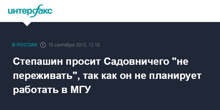 "Я туда не собираюсь. Я Виктору Анатольевичу (Садовничему - ректору МГУ - прим. ИФ) уже объяснил, что пускай не переживает", - сказал Степашин.