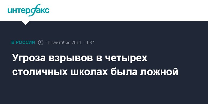 Москва. 10 сентября. INTERFAX.RU - Сообщения об угрозах взрывов в нескольких московских школах не подтвердились, сообщили "Интерфаксу" в пресс-службе ГУ МВД по Москве.