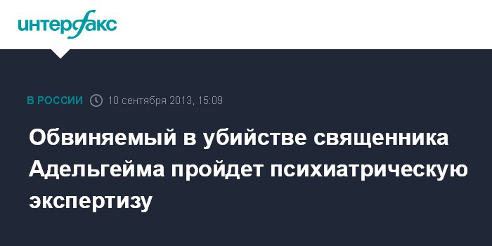 Псков. 10 сентября. INTERFAX.RU - Обвиняемому в убийстве псковского священника Павла Адельгейма Сергею Пчелинцеву назначено проведение психиатрической экспертизы, сообщает пресс-служба регионального СКР во вторник.