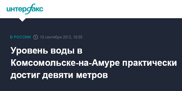 Москва. 10 сентября. INTERFAX.RU - Уровень Амура у Комсомольска-на-Амуре составил 899 см, сообщили в Гидрометцентре.